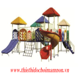 - Gồm 5 khối nhà liên kết thành hình vuông. Với nhiều chức năng chơi dành cho nhiều lứa tuổi. Khung bằng thép ống chịu lực, sàn tôn chống trượt. Hệ thống cầu trượt xoắn, ống và cầu trượt thẳng đơn, đôi, sóng bằng Composite. Có nhiều chức năng chơi, đặc biệt là hệ thống xà đu thể lực, cầu thang xích, bậc và cụm xích đu liên hoàn hiện đại. Màu sắc đẹp!